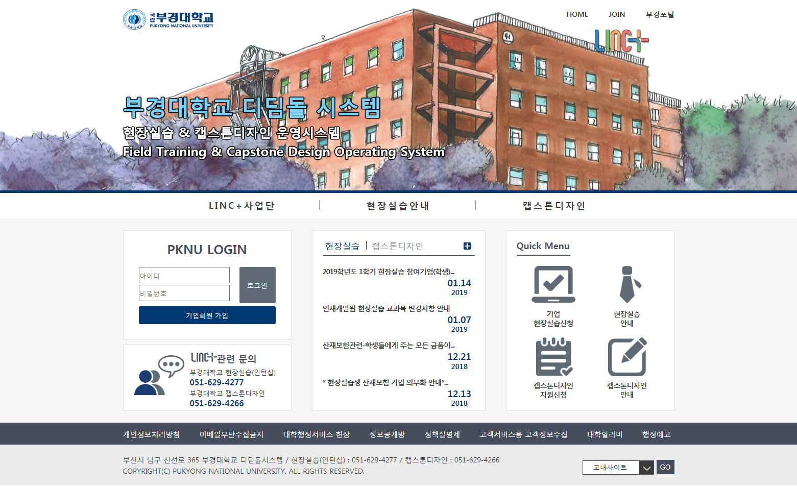 부경대학교 LINC+사업단 현장실습 및 캡스톤디자인 운영시스템을 신규로 구축하였습니다.