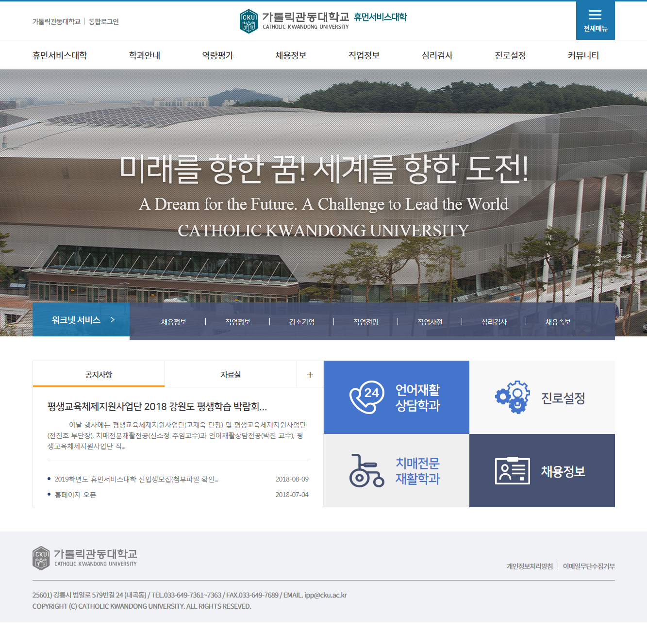 [가톨릭관동대학교] 휴먼재활서비스 학부 홈페이지