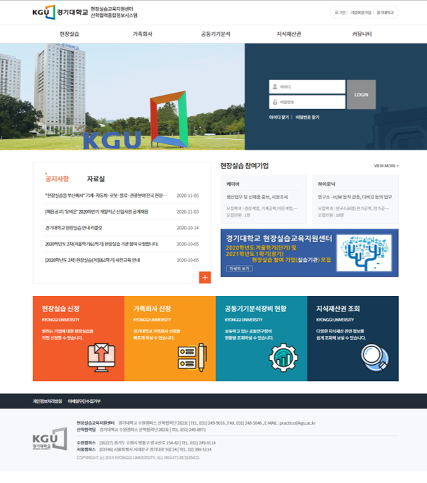 경기대학교 현장실습 포털시스템을 신규로 구축하였습니다.