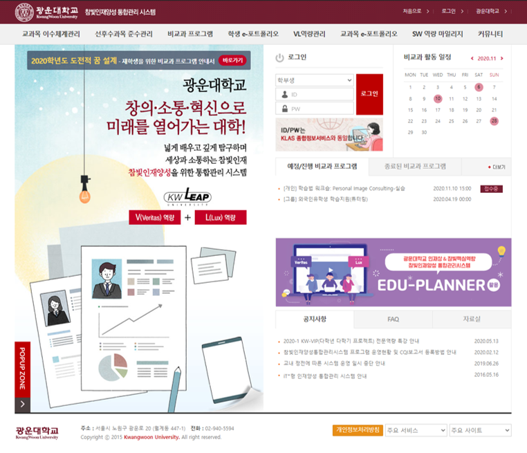 광운대학교 인재양성통합관리시스템의 기능을 추가하였습니다.