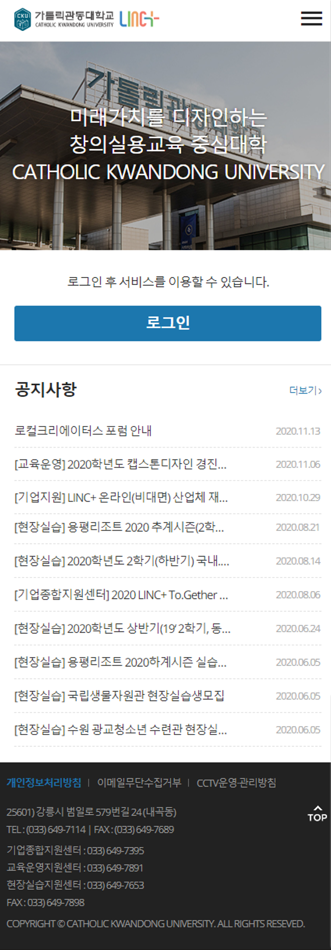 [가톨릭관동대] LINC+사업단 모바일 웹 개발 사업