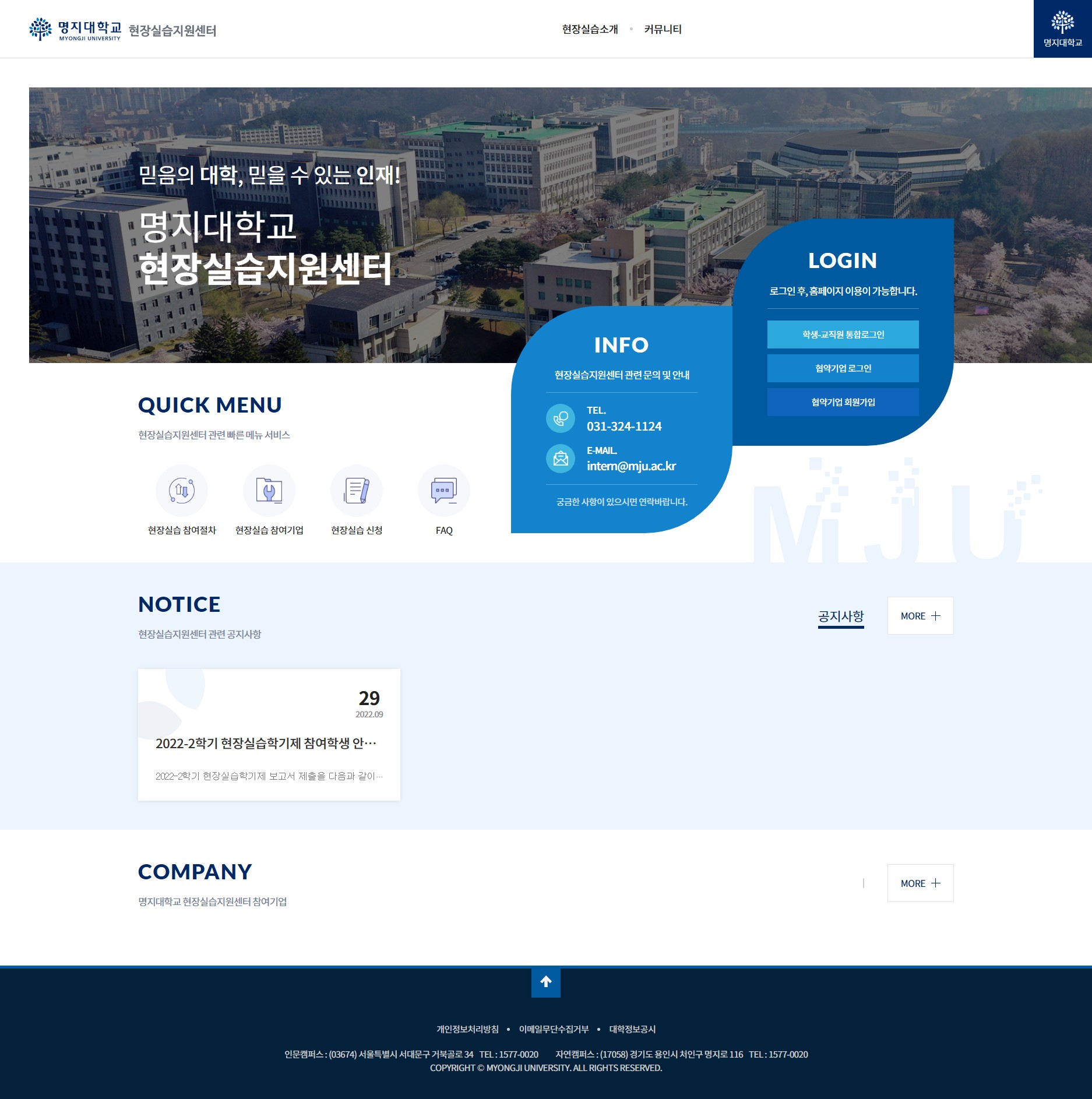 명지대학교 현장실습시스템을 구축 하였습니다.