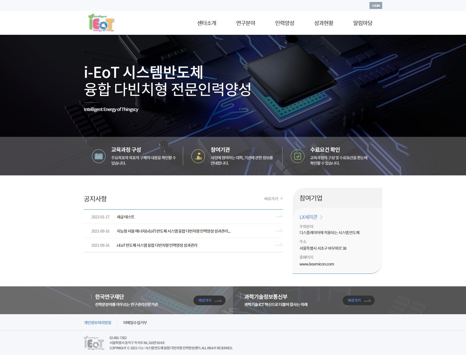 중앙대학교 산지능형 사물 에너지(i-EoT) 시스템 반도체 융합 다빈치형 인력양성 성과관리을 구축 하였습니다.