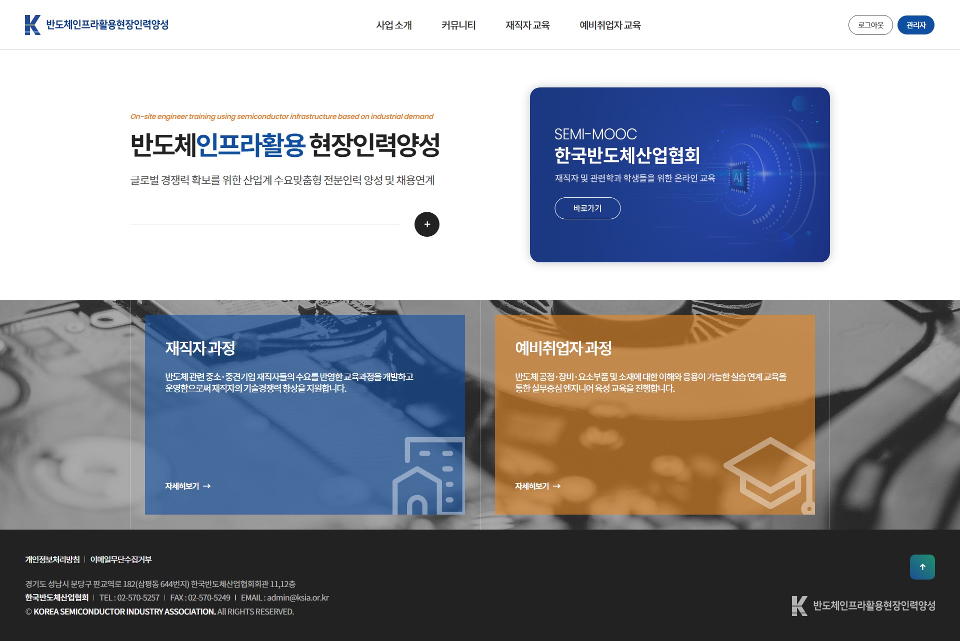 한국반도체산업협회 현장인력양성사업 온라인 시스템을 구축하였습니다.