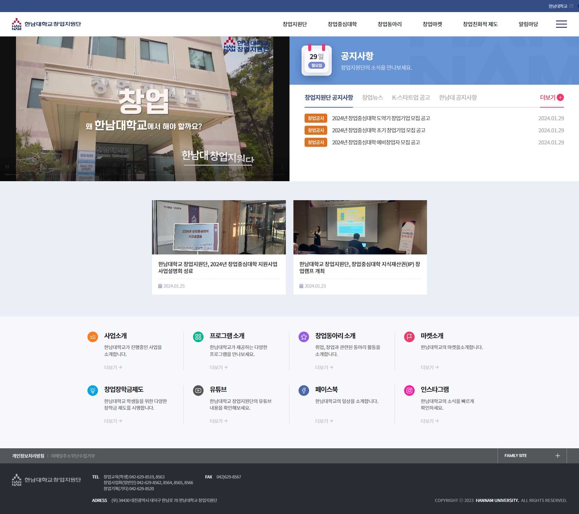 [한남대학교] 창업중심대학 한남대학교 창업지원단 홈페이지 제작