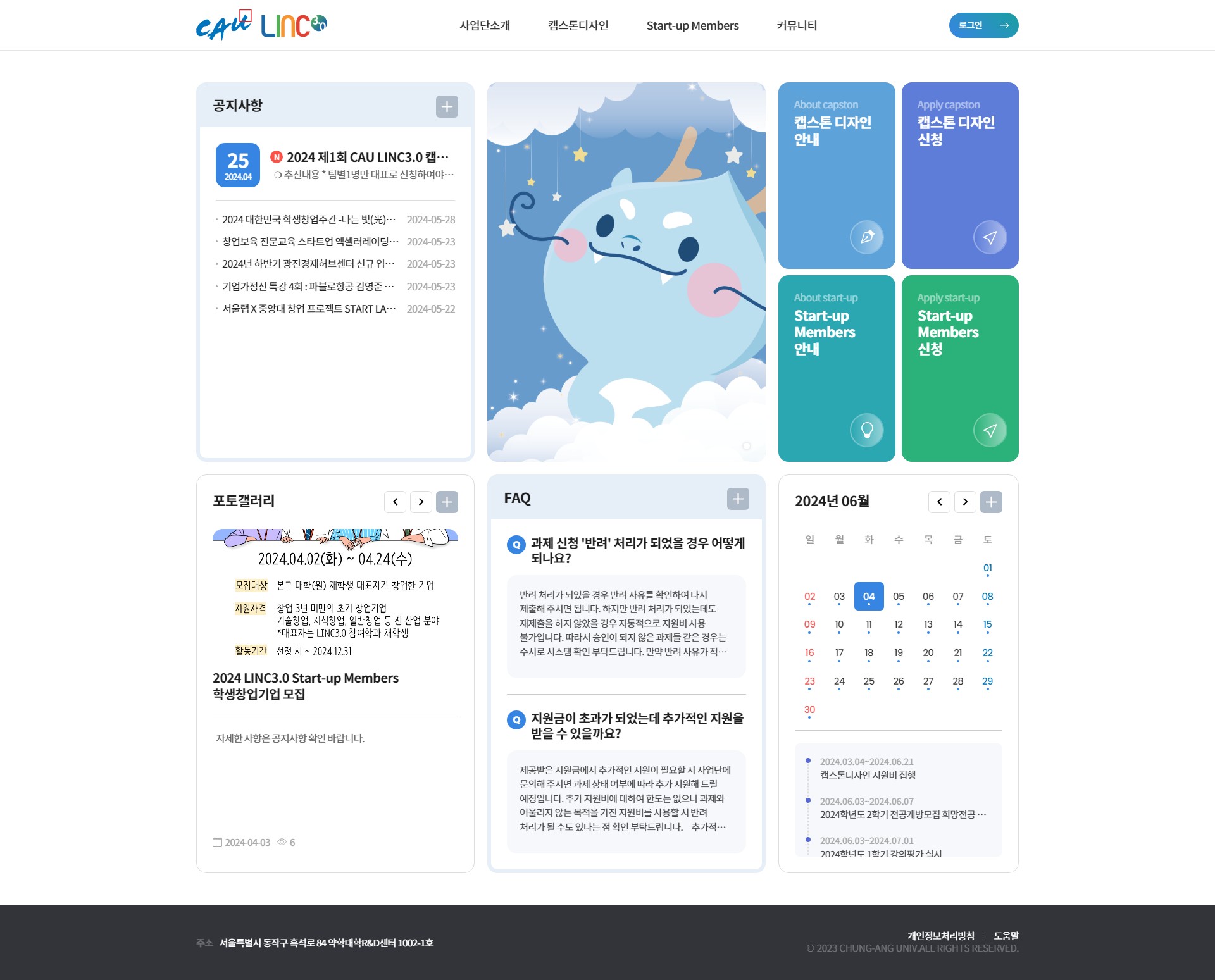 중앙대학교 LINC3.0 사업단 캡스톤디자인 통합관리시스템을 구축하였습니다.