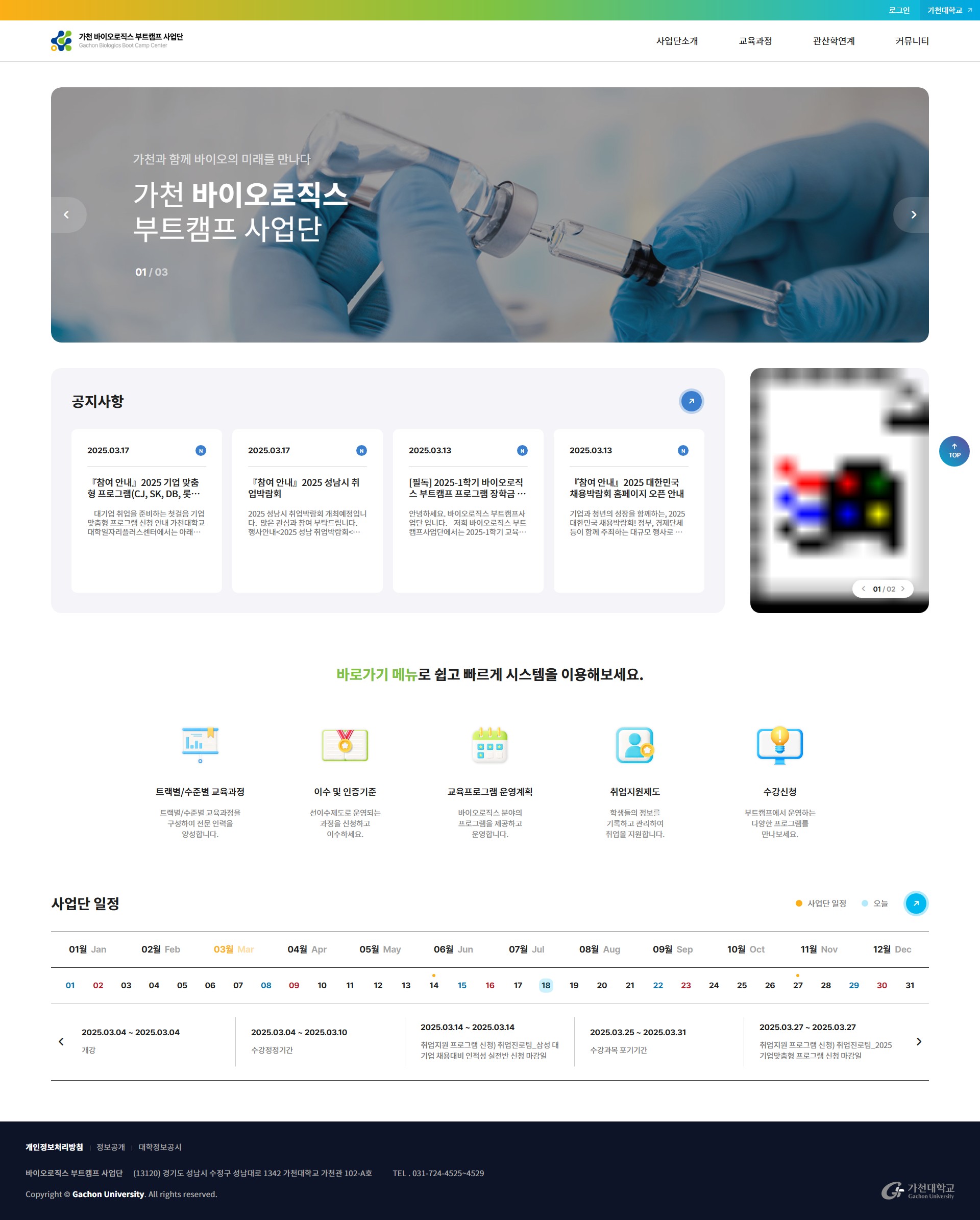 가천대학교 바이오로직스 부트캠프사업단 홈페이지 구축