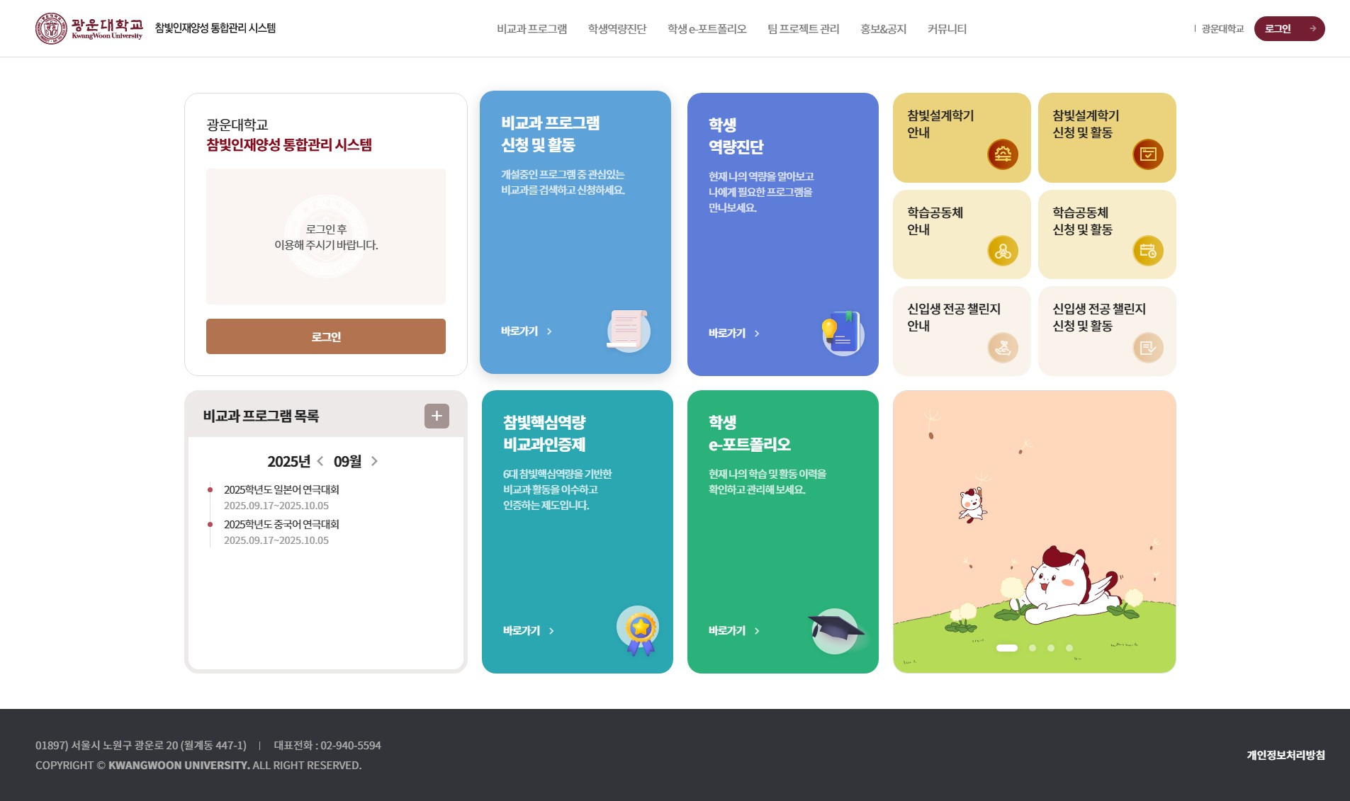 광운대학교 참빛인재양성 통합관리시스템을 고도화 하였습니다.