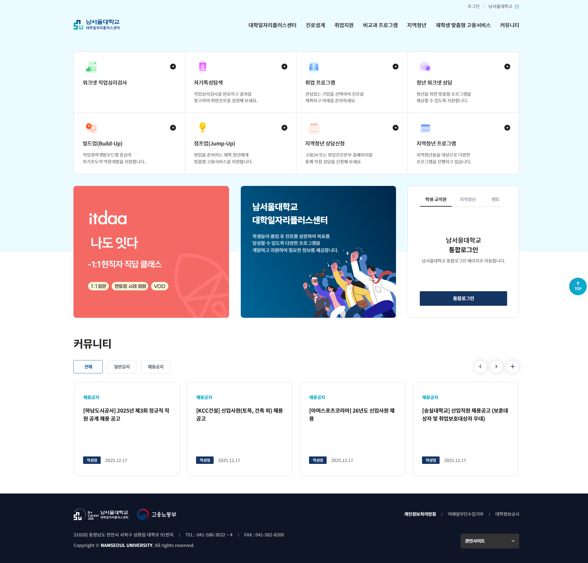 남서울대학교 대학일자리플러스센터 홈페이지를 고도화 하였습니다.