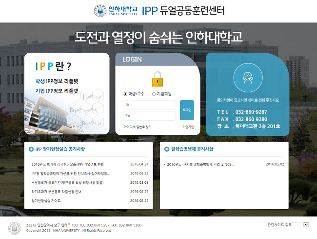 - 인하대학교 IPP(장기현장실습) 운영을 위한 포털시스템 구축